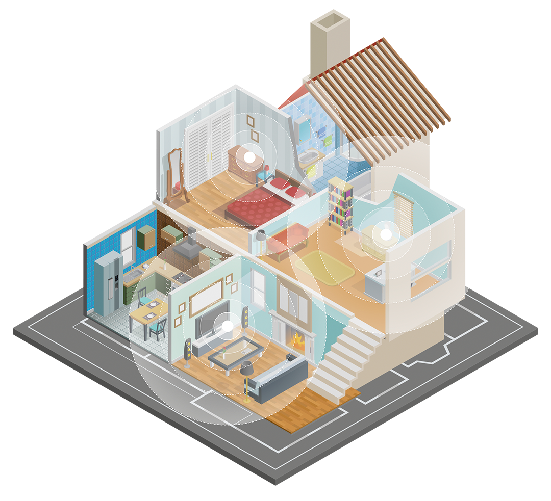A tecnologia Mesh conecta vários pontos de rede para fornecer cobertura Wi-Fi de forma contínua (sem mudança de rede). Os pontos se comunicam entre si, garantindo uma conexão estável e forte em todos os cantos de sua casa.